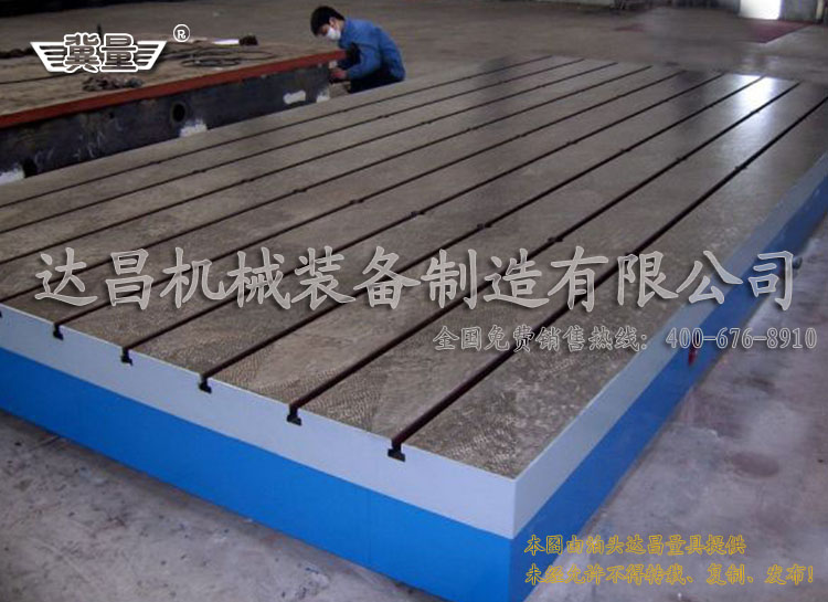 鑄鐵焊接平臺有多種款式,有平面的、帶條形孔的、帶圓孔的、帶T型槽的,T型槽焊接平臺是指的帶T型槽的這種。平面的焊接平右適用于各種大型工件的焊接工作。工作面上有圓孔或條形孔的上面的孔主要是讓它漏焊渣,方便清理鉚焊時的一些鐵渣和焊接廢棄物。帶T型槽的焊接平臺上在的T型槽主是要用來固定焊接件的。