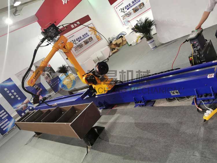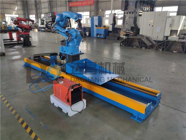 機器人行走軌道采用機器人外部軸控制,可以和機器人聯動動作,可以在任意位置停留機器人行走軌道,可以增加機器人的工作范圍,提高機械手的焊接行程。