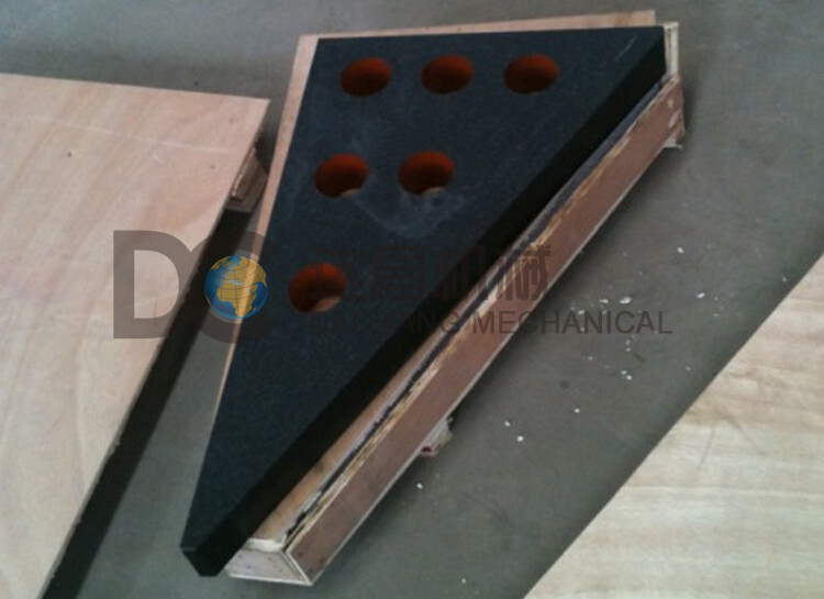 大理石直角尺適合于垂直度的檢測。平面精度標準GB6092-85,垂直度標準GB6092-85,為減少重量及方便加工而增加了減輕重量的小孔。