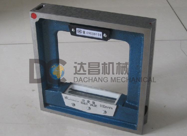 框式水平儀的精度為0.02/1000mm,即每米2C。上面刻度每格就是2C,即每有一格的偏差代表在一米長內(nèi)有一頭高出了2C